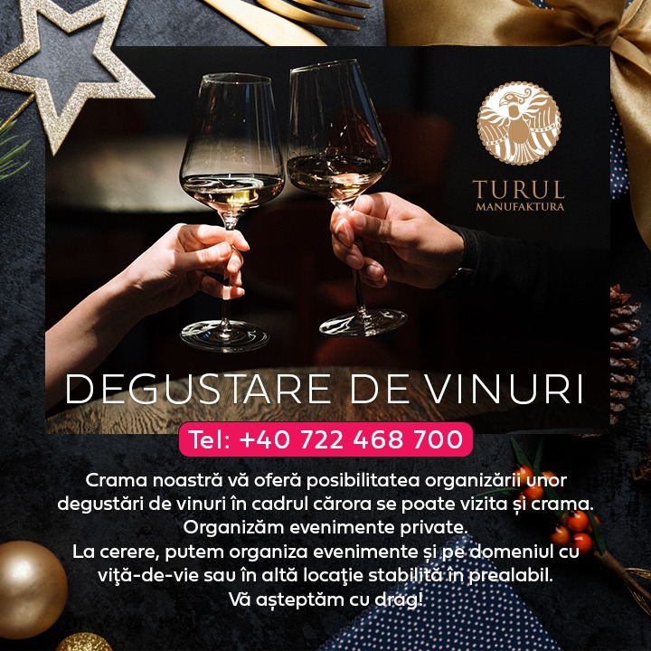 Organizăm degustări de vinuri la cerere pe domeniul nostru, în cadrul cărora prezentăm regiunea viticolă, istoria acesteia, crama și vinurile noastre.